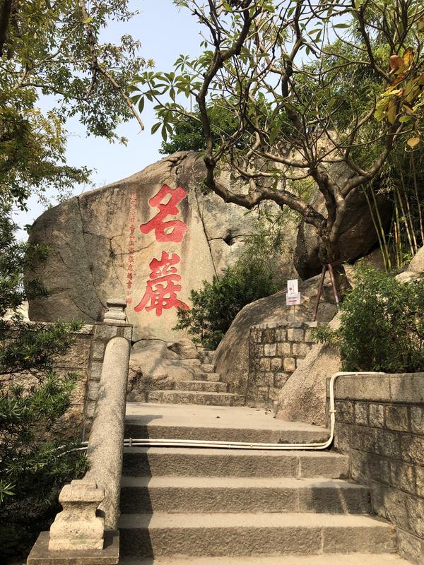 整座庙宇依山面海而建,由入口大门、牌坊、正殿、弘仁殿、观音阁及正觉禅林等部分组成,建筑布局错落有致,融合了自然山石与精巧殿堂。庙内古木参天,岩石嶙峋,摩崖石刻遍布,其中不乏历代名士墨宝。行走其间,既能感受到庄严的宗教氛围,又能领略中国古典园林的雅致趣味。袅袅香烟与海浪声交织在一起,营造出一种独特的宁静与神圣感。