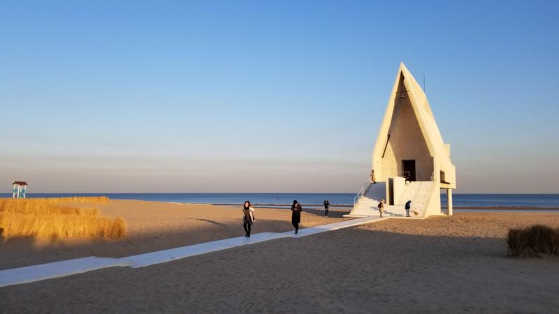 这座教堂之所以成为热门目的地,绝不仅仅因为它的位置。其建筑本身便是一件艺术品。纯白色的几何造型,简洁而富有力量感,静静矗立在沙滩与大海之间。无论从哪个角度望去,它都与天空、海洋构成一幅充满诗意的画面。尤其是日出和日落时分,光线变幻,教堂的轮廓被镀上金边或沉浸在温柔的蓝调中,成为摄影爱好者无法抗拒的取景地。它被誉为“离海最近的教堂”,海浪声仿佛是其永恒的伴奏。
