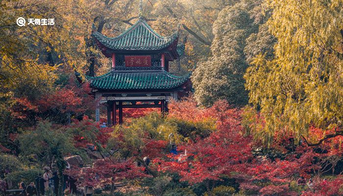 前往爱晚亭的旅程,本身就是一次融入湖湘文脉的体验。从岳麓山南大门进入,沿着清幽的山径前行,不久便能抵达清风峡。远远望去,爱晚亭重檐八柱,碧瓦飞檐,在满山青翠的掩映下格外醒目。亭子三面环山,一面开阔,前方是一池碧水,春夏绿意盎然,秋冬层林尽染,尤其是深秋时节,亭子被四周如火的枫叶环绕,完美再现了诗句中的意境,成为无数游客和摄影爱好者心驰神往的打卡胜地。