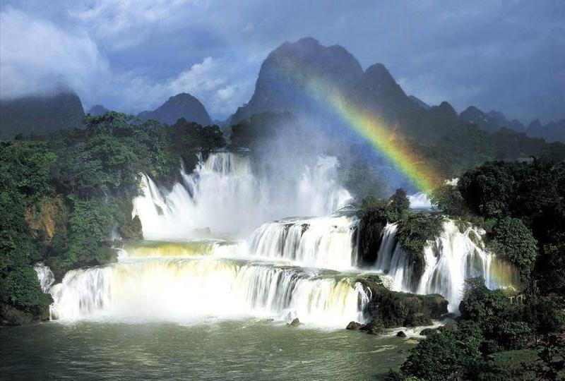 德天瀑布位于中国广西壮族自治区崇左市大新县硕龙镇。它横跨中国与越南边境,是亚洲第一、世界第四大的跨国瀑布。每年丰水期,德天瀑布与紧邻的越南板约瀑布连成一片,宽达两百多米,气势磅礴,蔚为壮观。