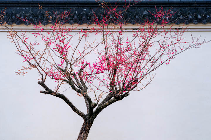 接着将目光转向太湖之滨的无锡梅园。由民族工商业先驱荣氏家族所建,这里不仅以梅著称,更融入了精巧的园林艺术。梅园依山而筑,亭台楼阁点缀其间,梅树与太湖石、清冽水池相得益彰,处处体现着江南的雅致。园内有许多珍贵的百年老梅,枝干苍劲,花开时别有风骨。在诵豳堂前品一盏清茶,看疏影横斜,闻冷香沁人,便能深切体会到“香雪海”这个诗意的名字从何而来。