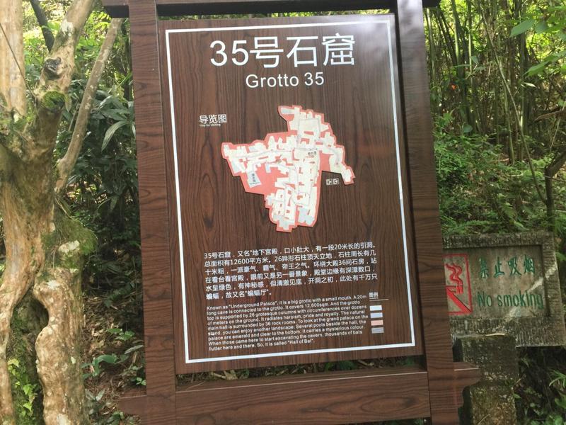 目前探明的石窟共有36处,其形态各异,有的洞内套洞,有的石柱林立,有的层叠交错。其中最具代表性的当属2号窟和35号窟。2号窟又称“地下长廊”,窟内拥有几十根巨大的石柱支撑顶壁,规模宛如一座地下宫殿。而35号窟则气势恢宏,面积达1.2万平方米,洞深约170米,最高处达18米,引入的新安江水使其形成一座幽深的地下湖,乘船游览,灯光映照下,千年斧凿的痕迹清晰可见,水光山色与古老石窟交织出梦幻般的景象。
