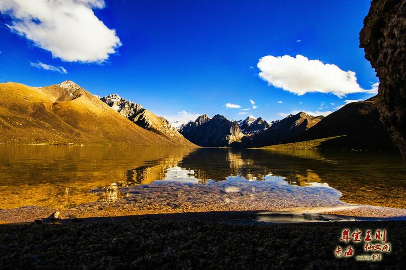 年宝玉则,又称年保玉则,意为“圣洁的松耳石峰”,位于青海省果洛藏族自治州久治县境内,是巴颜喀拉山的最高峰。这里平均海拔在4000米以上,由无数海拔在4000米以上的峻峭山峰组成,主峰海拔5369米,长年积雪,山体犹如花瓣般簇拥,湖泊如宝石般镶嵌其间,被誉为“天神的后花园”。