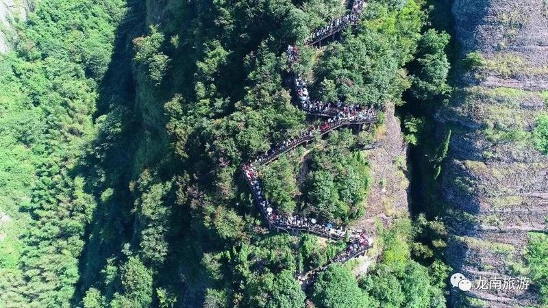 南武当山的核心魅力在于其九十九座奇峰。这些山峰并非高耸入云,却千姿百态,拔地而起,犹如一柄柄直指苍穹的利剑。典型的丹霞地貌赋予了它们赭红的色彩,在阳光与云雾的渲染下,气象万千。登山道蜿蜒在峰峦之间,最令人称奇的是那些依绝壁而建的悬空栈道。行走其上,身旁是垂直的崖壁,脚下是深邃的幽谷,惊险刺激之余,能将连绵的峰海尽收眼底,堪称一步一景,步步惊心。
