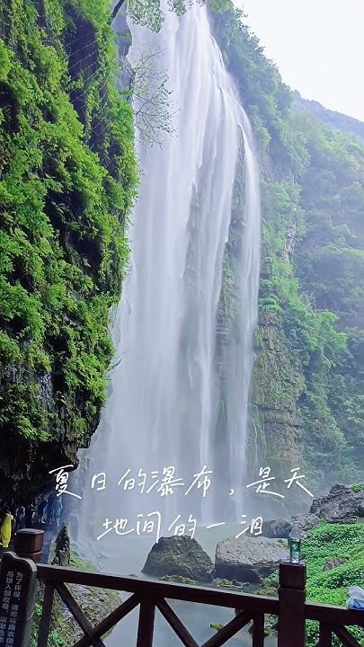 穿过一片竹林视野豁然开朗。瀑布终于出现在眼前它从近百米高的崖顶倾泻而下并非一泻千里的狂暴而是分成数股如银练般沿着岩壁的褶皱流淌。中段突出的岩石将水幕击碎成万千珠玉在午后阳光下折射出若隐若现的彩虹这便是“幽谷飞虹”名字的由来。水流最终汇入下方碧潭潭水清澈见底可见游鱼细石。水声在这里变得丰富轰鸣声、潺潺声、滴水声交织成自然的交响乐盖过了所有尘世杂音。