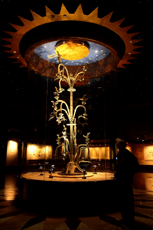 最引人遐想的莫过于那棵修复完整的青铜神树。它高达3.96米,上有九只神鸟,树下有巨龙盘绕,被认为是沟通天地的“建木”,是《山海经》神话的现实映照。站在它面前,你仿佛能感受到古蜀巫师在此祈求风调雨顺的虔诚。