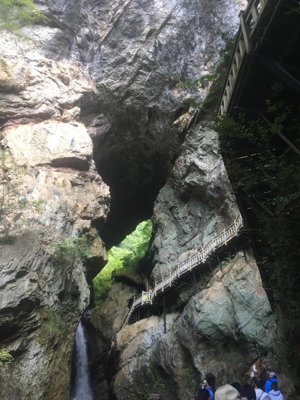 穿过桥洞,则是另一番天地。桥下多有溪流或地下河穿过,水流潺潺或奔腾不息,在空旷的桥洞中激起清越的回响。阳光从巨大的桥孔倾泻而下,在水面与岩壁上投射出变幻的光影,时而明亮,时而幽深,营造出如梦似幻的氛围。夏季此处清凉无比,是绝佳的避暑胜地。