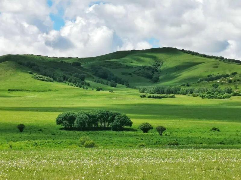 六月至八月,是乌兰布统的夏季,也是它最为生机盎然的时期。这时,广袤无垠的草原化作一片碧绿的海洋,野花如繁星般点缀其中,蓝天白云下,牛羊成群,勾勒出“天苍苍,野茫茫”的经典画卷。此时气候凉爽宜人,平均气温在15-25摄氏度之间,是避暑的绝佳选择。你可以策马奔腾,感受风在耳畔呼啸;也可以静坐山坡,看光影在草原上流动变幻。夏季也是拍摄星空和晨雾的黄金季节,公主湖、将军泡子旁的晨雾如梦似幻,夜晚的银河璀璨夺目。