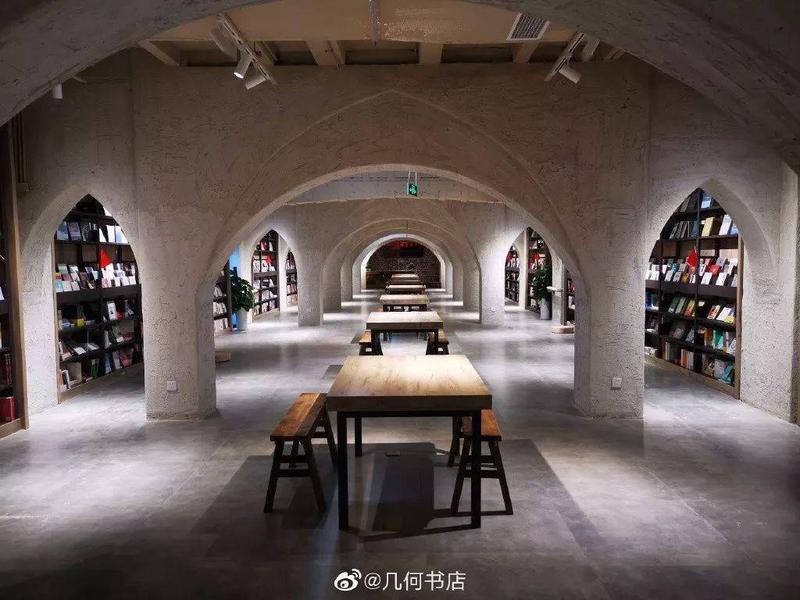 从香香巷的热闹中抽身,沿着河岸步行几分钟,便会遇见一个气质截然不同的空间——几何书店。这家书店最引人注目的,便是其标志性的洞穴风旋转楼梯。原始感的拱门与粗粝的墙面,营造出静谧而富有诗意的氛围。你可以顺着旋转楼梯探索三层空间,除了丰富的书籍,这里还融合了文创、咖啡、展览区域。选一本喜欢的书,点一杯咖啡,坐在靠窗的位置,窗外是缓缓流淌的府南河与悠闲的市民,窗内是安静阅读的人们。这份闹中取静的从容,是望平街文艺灵魂的栖息地。