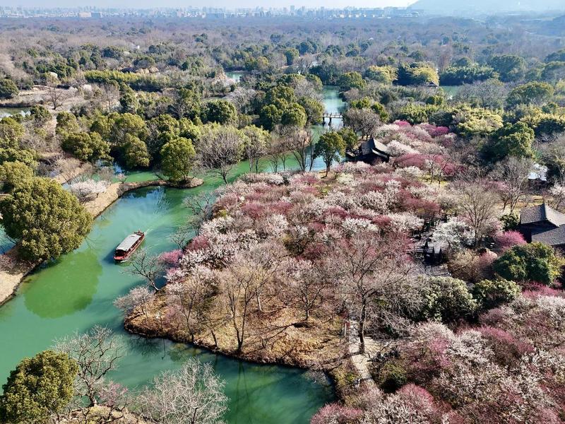 初春时节,“曲水寻梅”是探访西溪的第一份雅致。乘一叶摇橹船,蜿蜒于清波之上,两岸的梅树疏影横斜,暗香随水浮动,仿佛穿越了时空,与古人同享那份踏雪寻梅的幽趣。船行至深处,便可见“渔村烟雨”。古老的渔村静卧水畔,细雨朦胧时,白墙黛瓦倒映水中,炊烟袅袅升起,一幅活生生的水墨江南画卷在眼前徐徐展开,宁静而富有生活气息。
