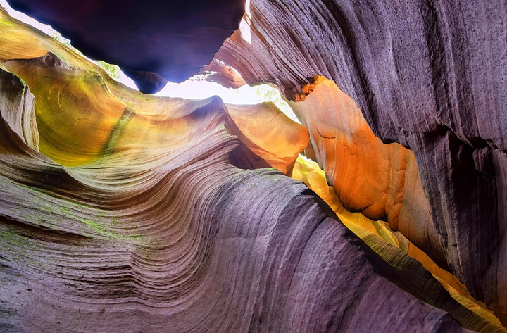 走进峡谷,仿佛进入另一个时空。阳光是最好的魔术师。在正午前后,当阳光能够直射入狭窄的谷底时,整个峡谷便迎来了它一天中最辉煌的时刻。光线穿过缝隙,在长满青苔的岩壁上跳跃、反射,幻化出金黄、赭红、暗绿、绛紫等变幻莫测的色彩。岩壁经过水流冲刷留下的波纹曲线,在光影的强化下,犹如流动的乐章,又似巨大的天然抽象画。这一刻,坚硬岩石的冰冷感全然消失,取而代之的是一种温暖、柔美而充满生命力的视觉体验。游客穿行其中,身影也成了这光影画卷的一部分。